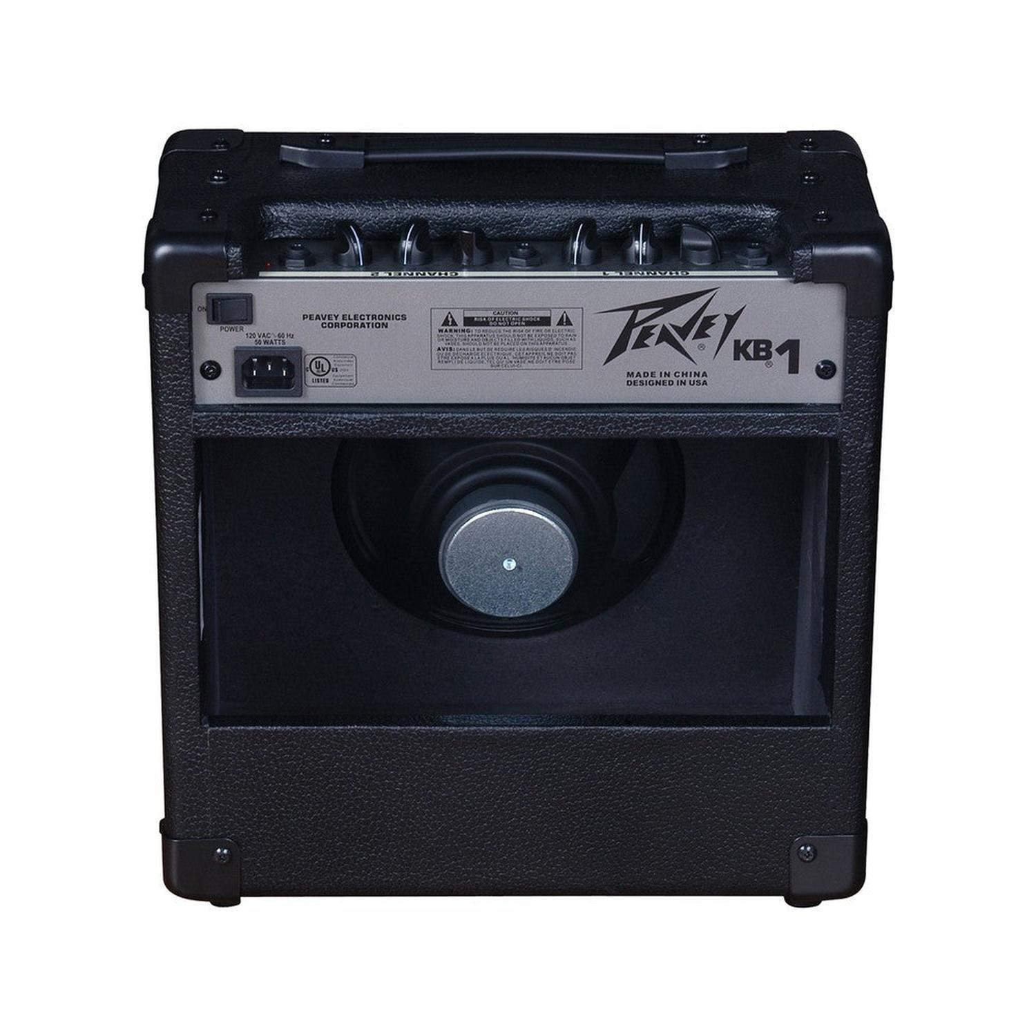 El KB 1 de Peavey es un amplificador de teclado ideal para la práctica, el precalentamiento previo a un concierto, la composición de canciones o cualquier otra aplicación en la que la calidad del sonido es importante, pero con el tamaño adecuado. Posee una estructura resistente y duradera, su diseño lo convierte en un amplificador compacto de trabajo especialmente para tecladistas, pero puede ser utilizado también para guitarristas acústicos y otros músicos que necesitan salida de gama completa en un paquete pequeño. CARACTERÍSTICAS: Amplificador combo diseñado para teclado. Entrega una potencia de 20w rms a 4 ohms. Posee un woofer de 8 pulgadas. Posee dos canales separados. Ecualizados de 2 bandas por canal. Respuesta de frecuencia: +0, -2 dB, 50 Hz a 10 kHz. Posee una salida de audífonos. Consumo de energía: 50 Watts, 50/60 Hz, 120 VAC.