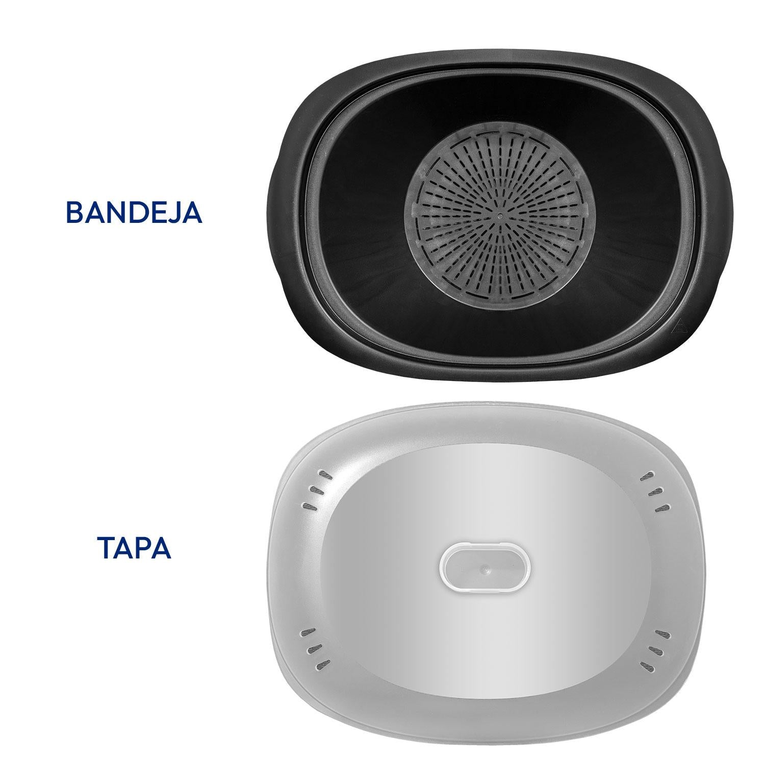 bandeja, vaporera, tapa, medidor.