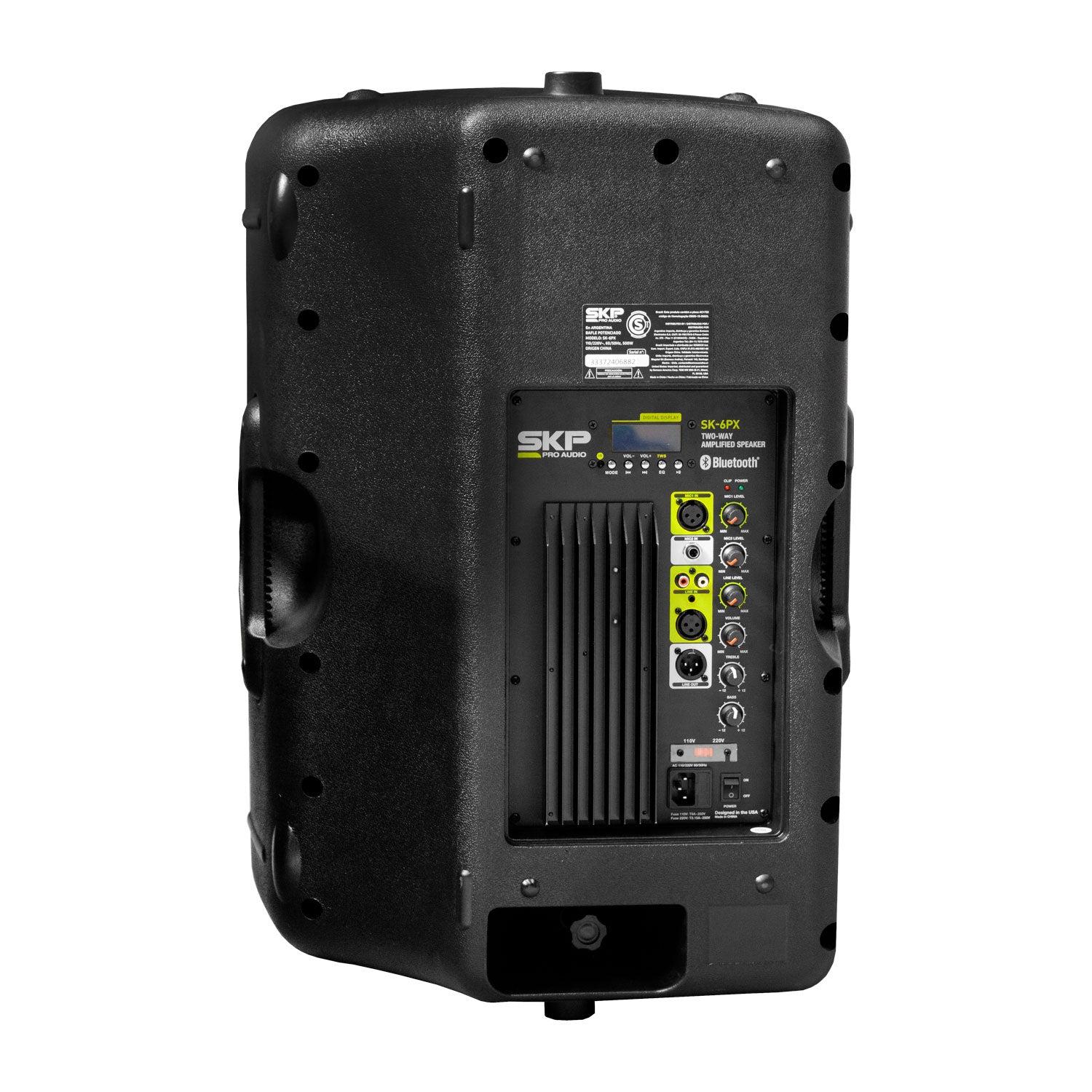 El SK 6PX Bk de SKP es un parlante activo que cuenta con un woofer de 15 pulgadas y entrega una potencia de 350w rms a 8 ohms. Su estructura es de plástico reforzado resistente y duradero, posee conexión vía bluetooth para reproducir la música que más desees desde un dispositivo móvil o Tablet. Además, cuenta con la opción de ser utilizado tanto como un parlante vertical como un monitor de piso debido a su corte en diagonal de 45°. El SK 6PX se diferencia de los otros parlantes debido a que incluye un atril de excelente calidad. CARACTERÍSTICAS: Cuenta con un woofer de 15 pulgadas. Ecualizador de 2 bandas. Entrada de micrófono 1 XLR (balanceada) y entrada de micrófono Plug 1/4¨ (no balanceada). Entrada de línea RCA estéreo. Entrada de línea XLR. Salida XLR. Se puede colocar como monitor de piso en 45°. Posee conexión vía bluetooth para música. Entrega una potencia de 350w rms a 8 ohms. Tiene una respuesta en frecuencia de 40Hz – 19KHz. Posee una Sensibilidad de 96 dB ( a1W/1m). Nivel de Presión Sonora máximo: 130dB. Driver de altas frecuencias: diafragma de titanio de 1.75¨ con salida a bocina hiperbólica Angulo de cobertura 90x50°. Patrón directivo Cardioide. Impedancia salida parlante pasivo de 8 Ohm. Nivel esperado de entrada de micrófono menor que 5mV. Nivel esperado de entrada y salida de línea 250mV Alimentación: 110/220V , 60/50Hz. Consumo de energía: 700W Clase I. Fusible: 110V: T5A-250V 220V: T3.15A-250V. Medidas: 53x46,5x74,5cm. Peso: 21.5kg. *NO POSEE BATERIA, SOLO FUNCIONA CONECTADO A LA CORRIENTE. *MODELO NUEVO, NO POSEE USB NI MICRO SD, NI SALIDA POTENCIADA.