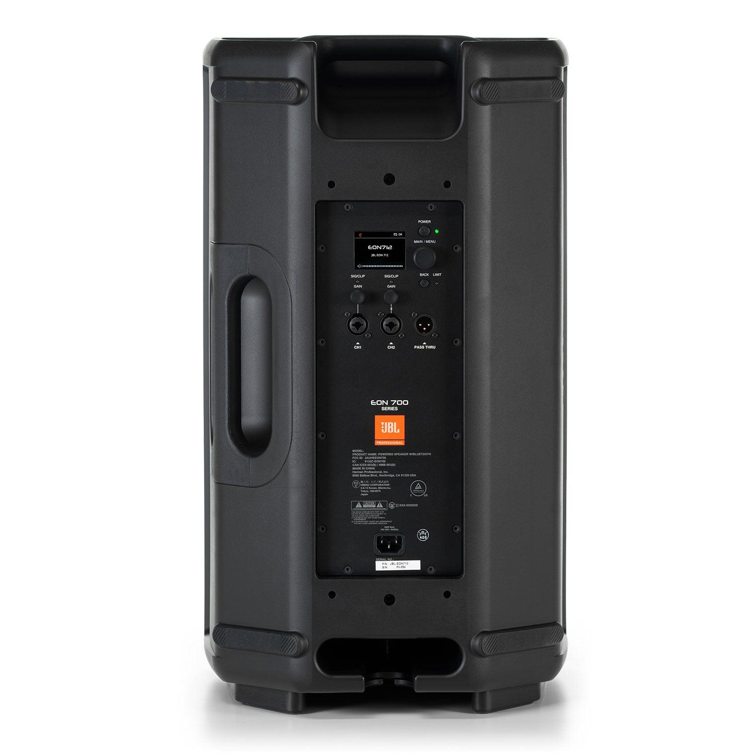 El Eon 712 de la última línea de JBL Eon700 es un parlante profesional activo diseñado especialmente eventos en vivo o en instalación. Posee una estructura de polipropileno mutlipropósito resistente y duradero, su rejilla es de acero con recubrimiento en polvo reforzado con una pantalla negra acústicamente transparente para proteger sus componentes, posee un orificio de 36mm para atril con seguro dos manillas para un facil transporte. Este nuevo modelo posee un woofer de 12 pulgadas, bocina de alta frecuencia rediseñara y una potencia en rms de 650w. Una de sus nuevas y mejoradas características es que posee bluetooth para ecualizar a través de la app incluida de JBL y transmitir audio, además su función de atenuación permite disminuir el volumen si detecta voz. Cuenta con un control de volumen master, dos canales con control de volumen independiente y una conexión para puentear otro parlante Eon 715 (copia de señal). CARACTERÍSTICAS: Parlante activo profesional. Parlante eléctrico 12IN. Posee un woofer de 12 pulgadas (modelo 712G). Imán de woofer de ferrita. Bocina de alta frecuencia rediseñada. Bluetooth para ecualizar a través de la app incluida de JBL y transmitir audio. Bobina del woofer de 2 pulgadas. Tiene un tweeter de 1 pulgada con controlador de compresión 2414H. Imán del tweeter de neodimio. Impedancia del transductor: Baja frecuencia nominal de 4 ohmios, alta frecuencia nominal de 8 ohmios. DSP dbx avanzado: supresión automática de retroalimentación, atenuación, retardo de altavoz de 100 ms, ecualizador paramétrico. Máxima SPL de 127dB a 1 m/4Pi. Rango de frecuencia -10 de 50Hz - 20kHz. Rango de frecuencia -3 de 60Hz - 20kHz. Dispersión horizontal de 110° y vertical de 60°. Potencia en rms de 650w. Entrada de Alimentación CA de 100v - 120V y 220V - 240V. Posee una refrigeración pasiva. Cuenta con indicador led de alimentación, limite, delantera, de señal y SSM. Impedancia de entrada de 50.000/100.000 desequilibrada/equilibrada. Ganancia de entrada de -infinito hasta +36dB. Frecuencia de cruce de 2kHz. Salidas y entradas: 2 conectores combo XLR, BT, 1 XLR M thru. Medidas producto: 67x38x33cm. Peso neto: 14kgs. Medidas caja: 68x49x43xcm. *NO POSEE BATERIA INTERNA, FUNCIONA SOLO CONECTADO A LA CORRIENTE.