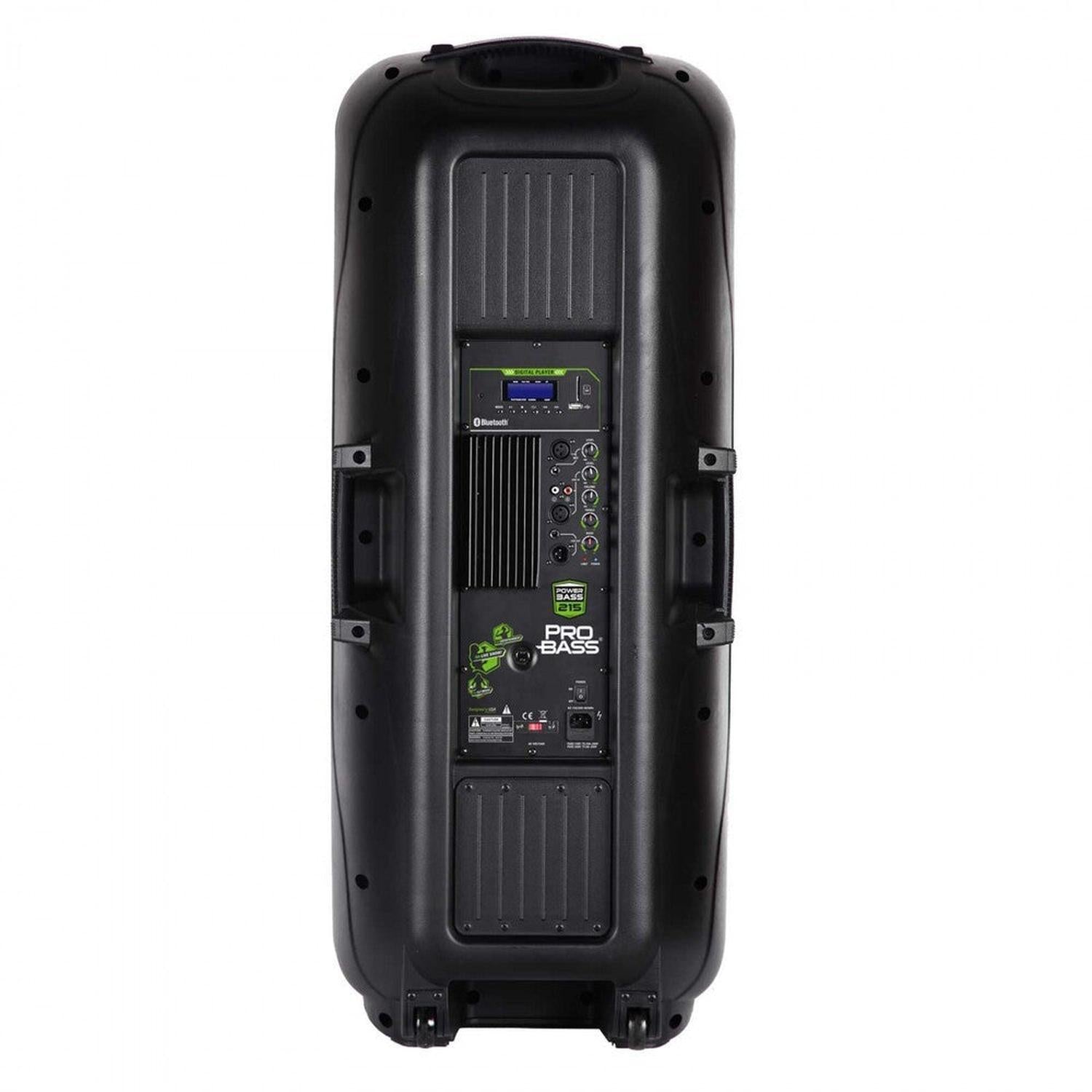 El Powerbass de Probass es un parlante activo tipo concert que posee 2 woofer de 15 pulgadas, ideal para fiestas en casa o quinchos. Además posee conector USB, SB y bluetooth para reproducir la música que más desees desde un dispositivo móvil y Tablet, incluye un control remoto. Potencia maxima 4700W. bluetooth. USB/SD. Reproductor mp3. Pantalla LED. Woofer de 2x15". Respuesta de frecuencia: 30Hz - 20KHz Impedancia: 4 Ohms. Amplificador clase H. Entrada de micrófono XLR / 1/4" jack. Entrada de linea XLR / RCA. Salida de linea XLR / 1/4" jack. control remoto. Voltage:110V / 220V switchable.